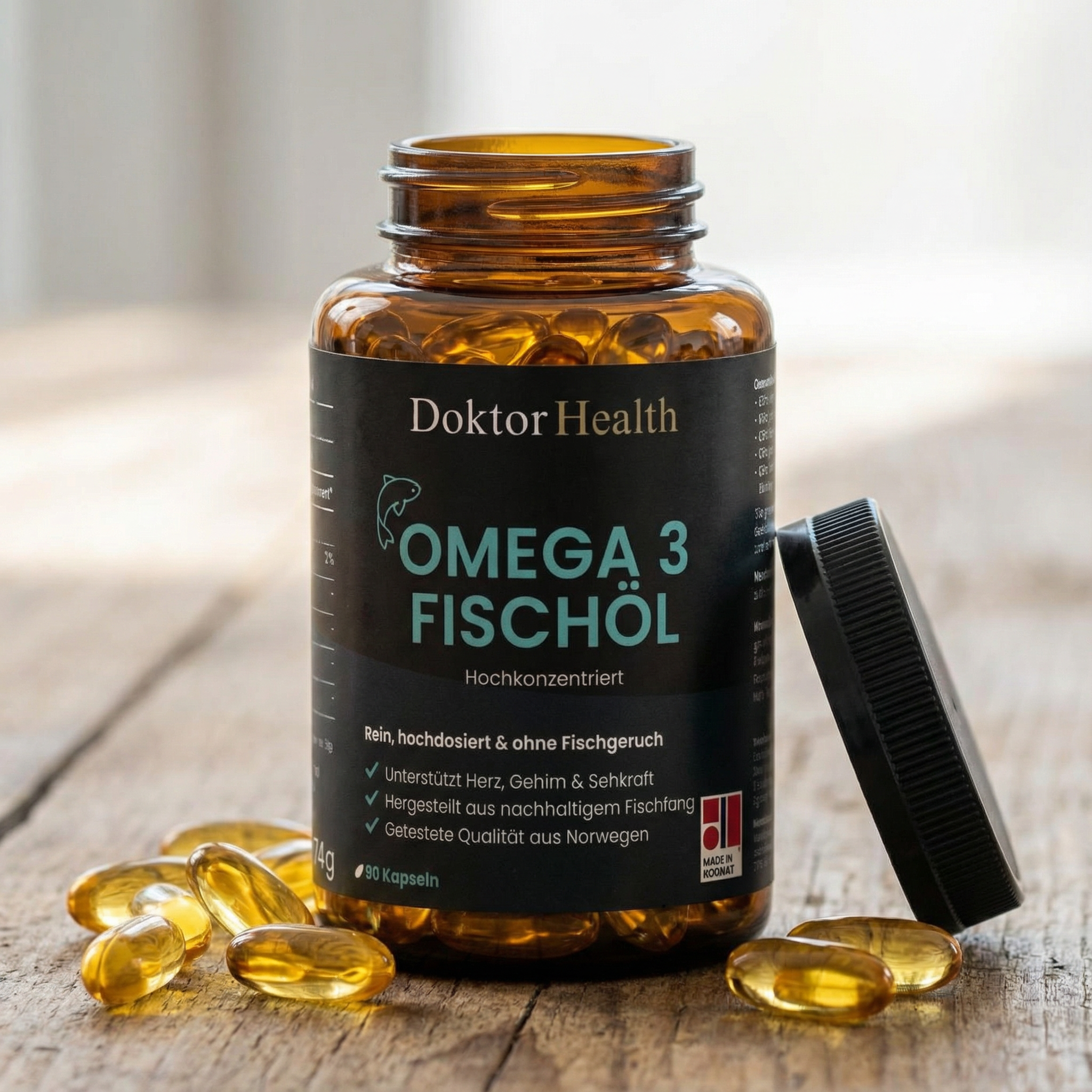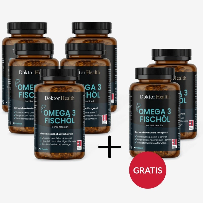 Doktor Health Omega-3 Fischöl – hochdosierte Omega-3-Fettsäuren für Herz, Gehirn und Zellfunktion.
