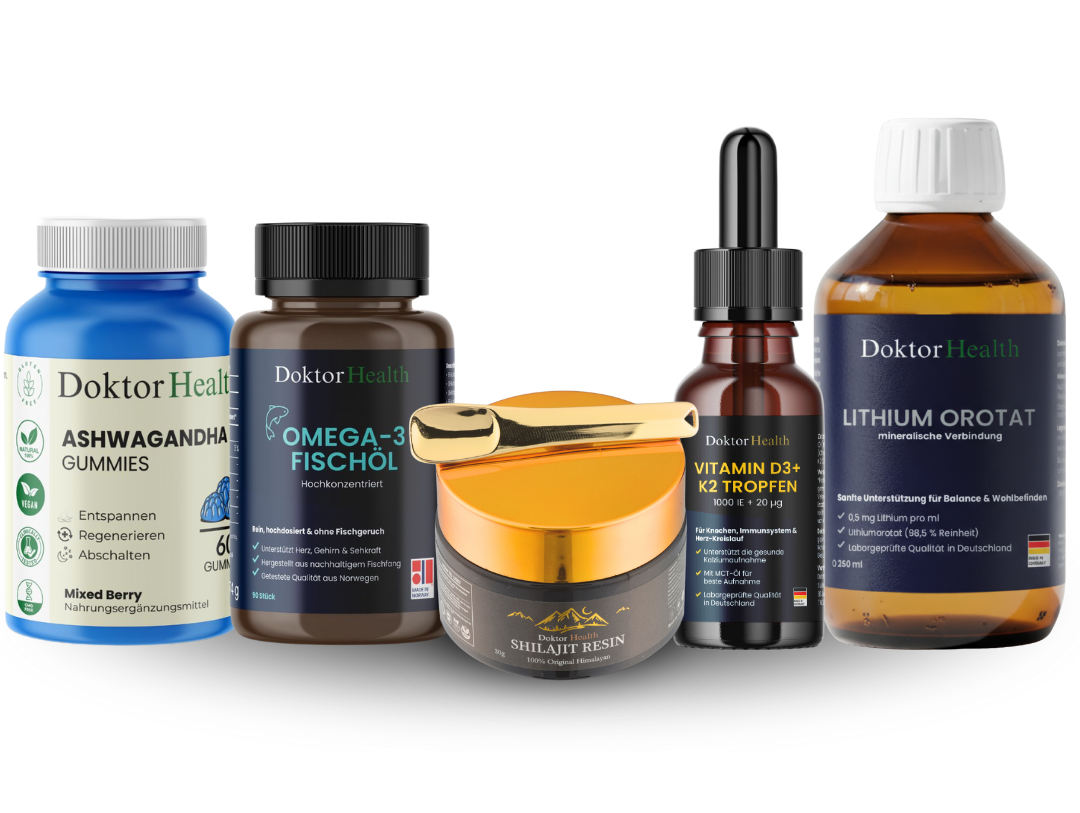 Jedes Produkt erfüllt eine präzise, wissenschaftlich fundierte Funktion, von der Zellenergie bis zur Stressregulation. Während Shilajit die Energieproduktion auf Mitochondrienebene aktiviert, sorgt Ashwagandha für mentale Ruhe und emotionale Ausgeglichenheit. Omega-3 stärkt Gehirn, Herz und Gelenke, während Vitamin D3 + K2 deine Knochenstruktur und Immunfunktion unterstützt. Ergänzt durch Lithium Orotat wird das System komplett für mehr Fokus, Stressresistenz und langfristige neuronale Balance.